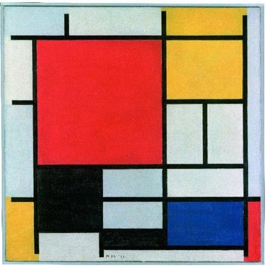 It seems so simple: a white or gray background, black lines, squares and rectangles of pure primary colors—red, yellow, blue. And yet, even from a purely technical perspective, one sees how everything is painted with infinite care; every brushstroke has its value, thickness, intensity, in subtle luminous variations; every effect is minutely calculated—not with cold geometry, but with the acute sensitivity of a painter.